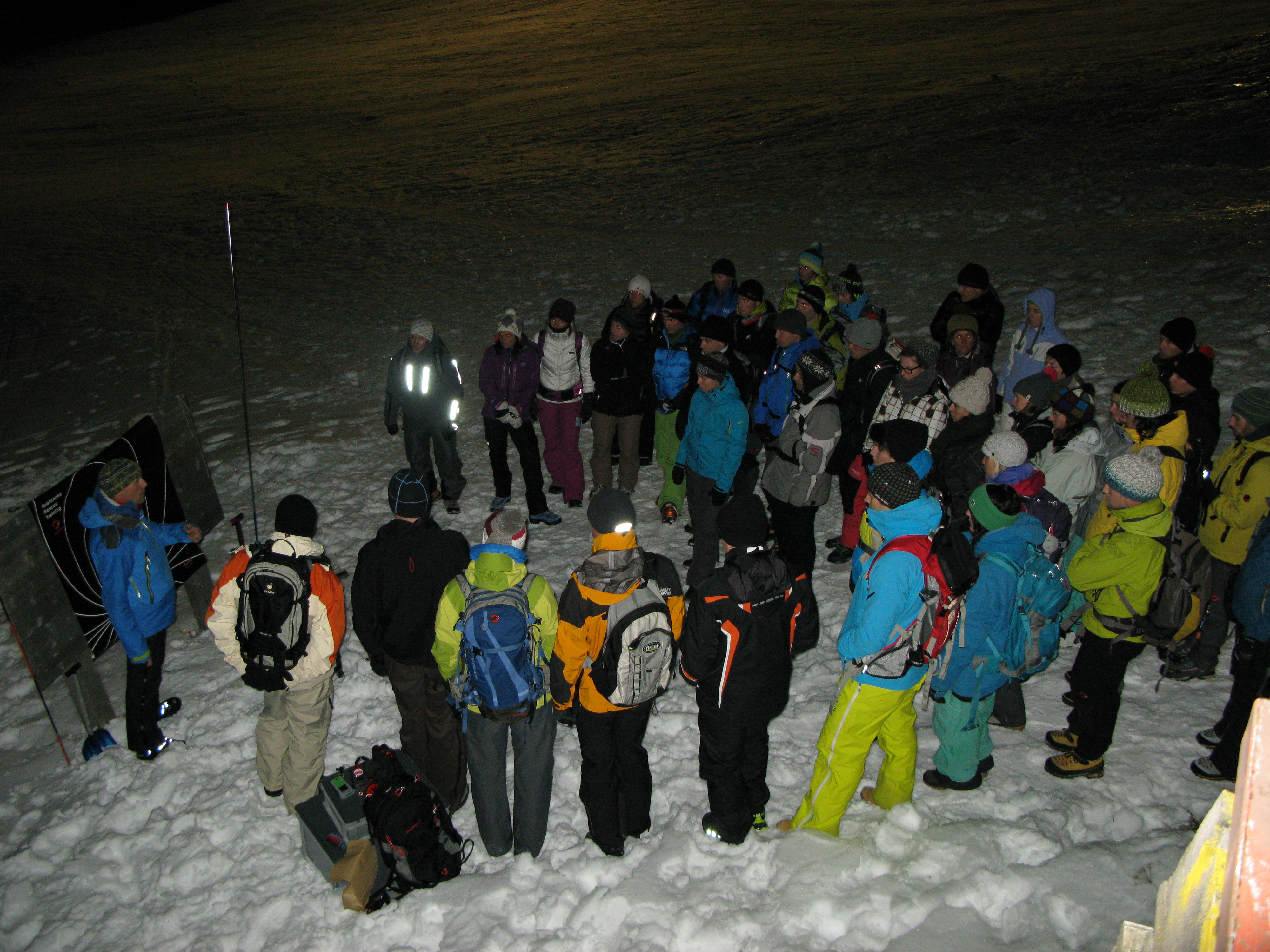 - une soirée “sur le terrain” pour s’entaîner ou découvrir la “recherche ARVA-DVA” (recherche de personnes ensevelies sous une avalanche), sonder et peller pour dégager une personne ensevlie…